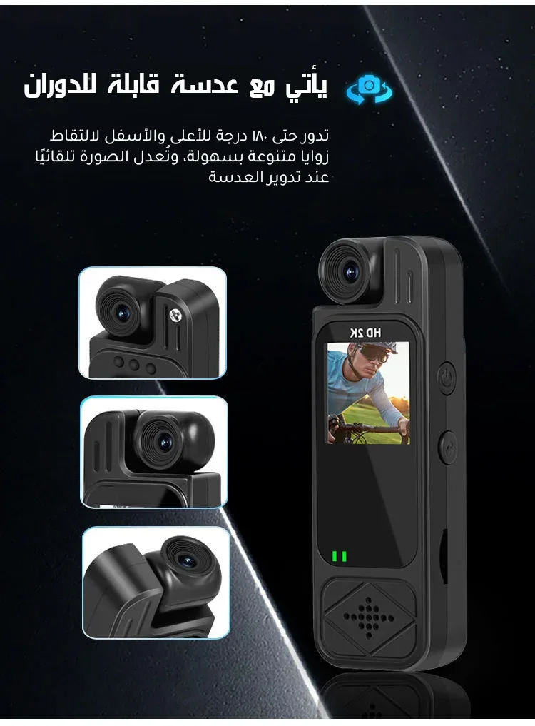 مع العدسة الدوارة 180 درجة، يمكنك تعديل زاوية التصوير بحرية كاملة لتناسب أي وضعية أو بيئة. سواء كنت تصور نفسك، أصدقائك، أو المناظر الطبيعية، الكاميرا تمنحك المرونة لتسجيل أفضل الزوايا دون الحاجة لتحريك الجهاز كثيرًا.