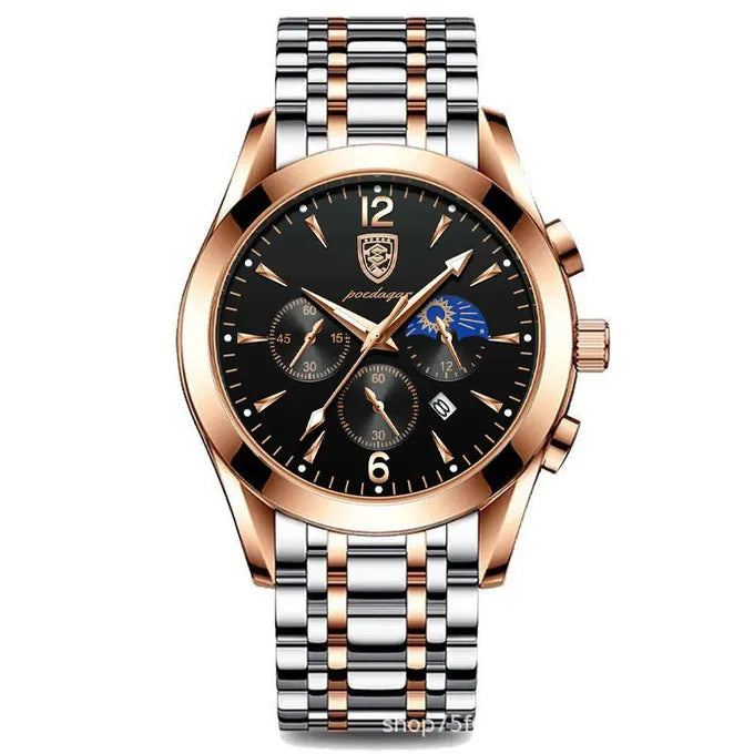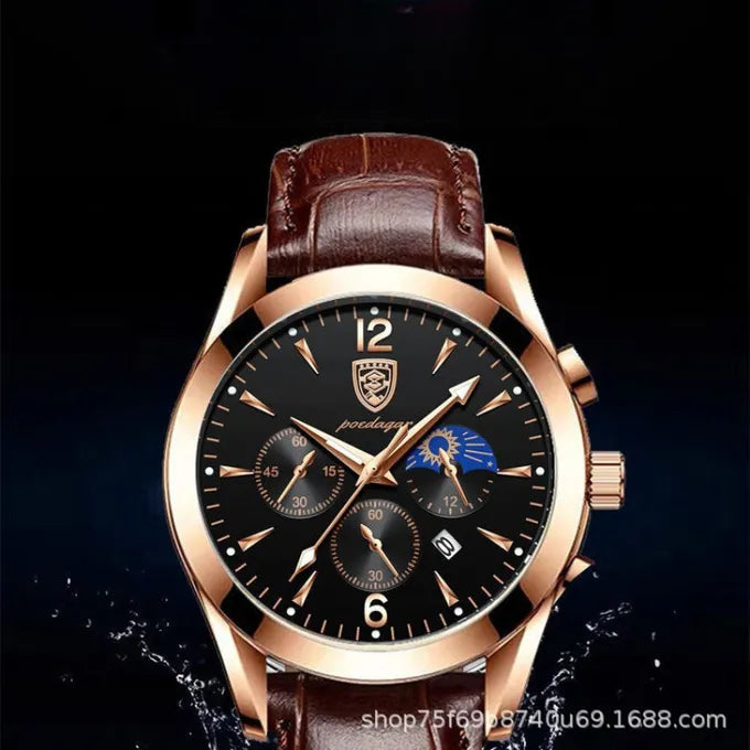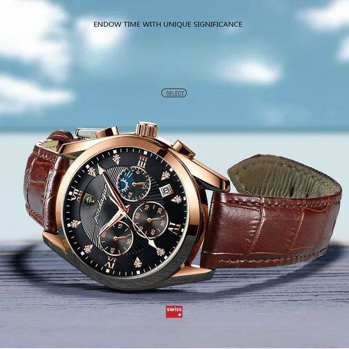 ارتقِ بإطلالتك مع ساعتنا الفاخرة المصممة للرجل العصري الذي يجمع بين الأناقة والقوة. تصميم راقٍ، جودة عالية، ومظهر يعكس الثقة في كل مناسبة