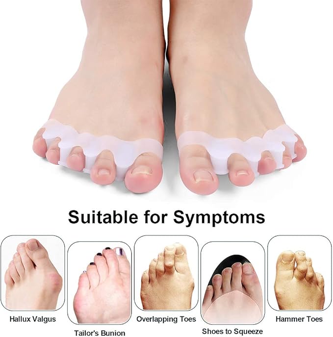 🦶 يوفر التصميم المرن المصنوع من السيليكون الناعم فاصلًا لطيفًا بين أصابع القدم، مما يساعد على تقليل الاحتكاك والانزعاج الناتج عن تلامس الأصابع أثناء المشي أو الوقوف لفترات طويلة. هذا التصميم يساهم في توفير شعور بالراحة ودعم أفضل لوضعية القدم.