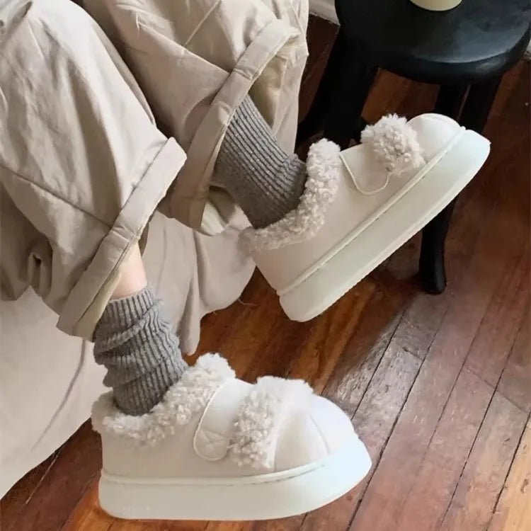 حذاء نسائي شتوي منزلي فاخر مبطن بفرو فائق النعومة